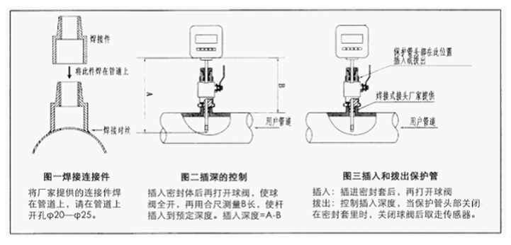 (2)插入流量計(jì),請按圖二方法操作,插入深度按1)所述。