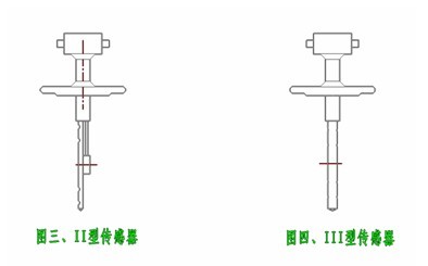 3.2.1、Ⅰ型,適用于(20~50)㎜的管道,外形如圖2所示。其檢測(cè)桿直徑一般為4.5~6.5㎜,傳感器與管道的連接方式有兩種:一種是螺紋連接,另一種是法蘭連接。用于高壓測(cè)量時(shí)都采用法蘭連接3.2.2、Ⅱ型,適用于40~100㎜的管道,外形如圖3所示。
