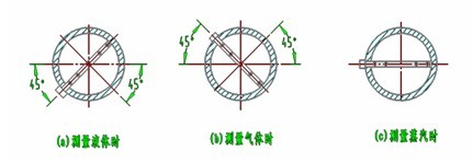 對(duì)于垂直管道傳感器可安裝在管道水平面沿管道圓周360的任何位置上,高低壓引壓管應(yīng)處于同一平面上,由圖六(a)所示;當(dāng)測(cè)量液體時(shí),應(yīng)向下側(cè)傾斜安裝如圖六(b)所示;當(dāng)測(cè)量氣體的蒸氣時(shí)應(yīng)向上傾斜安裝如圖六(c)所
